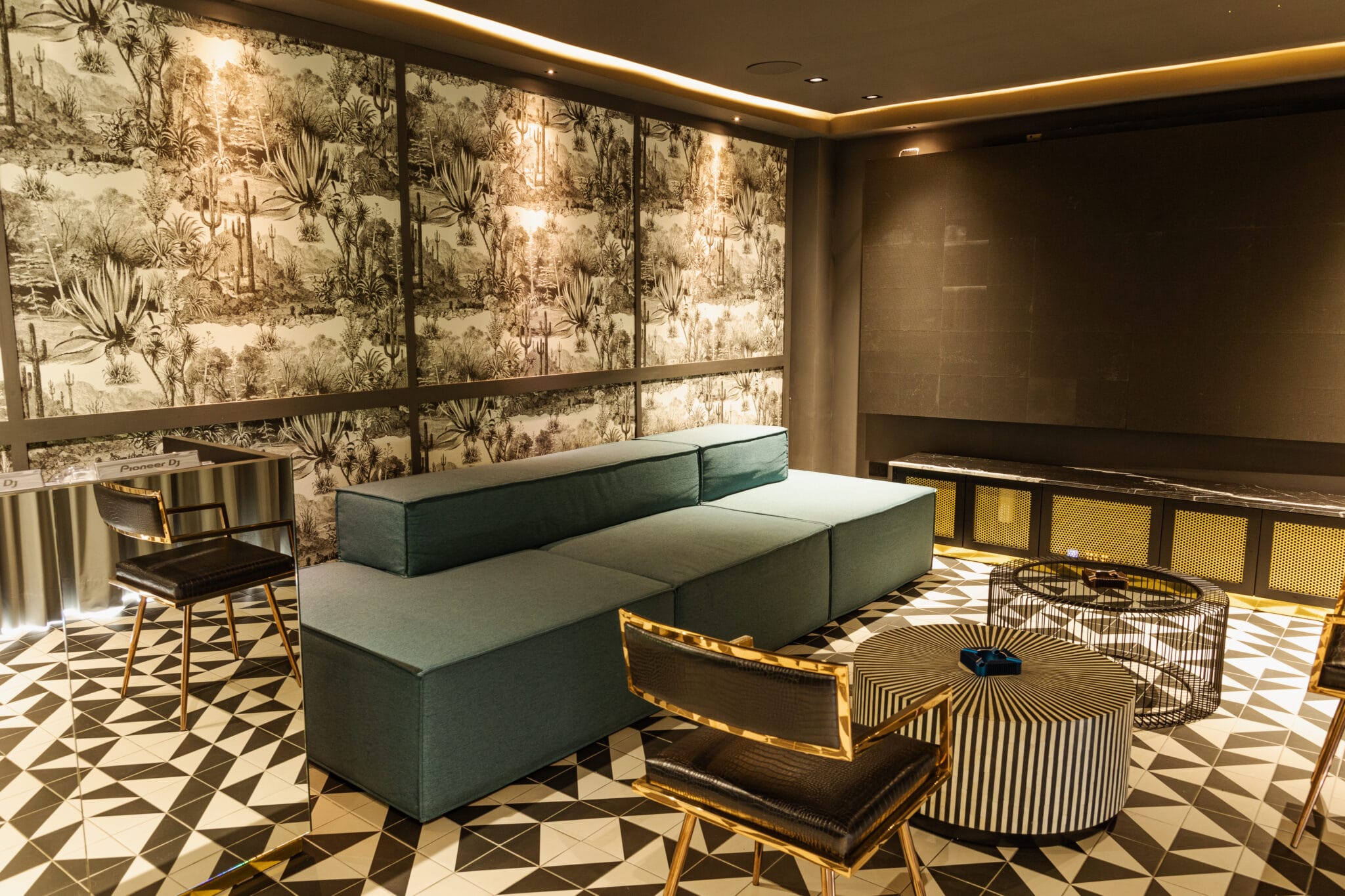 Además de la decoración, la automatización y el sonido fueron claves. El piso y los papeles de colgadura con un toque “psicodélico” para quebrar los límites impuestos de la mente y de la realidad como la vemos y vivimos.